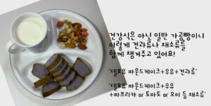 또는 ‘델포유 파운드케이크+토마토,파프리카,오이 같은 채소류+우유’