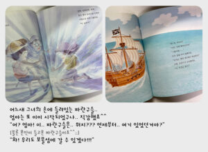 모래 놀이터에서 해적 놀이를 하다 보물섬으로 탐험을 가는 내용 두 권을 좋아해요.